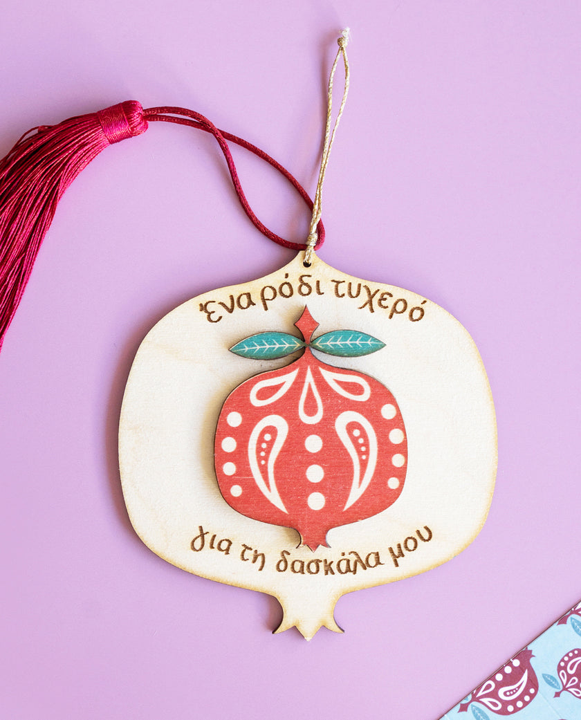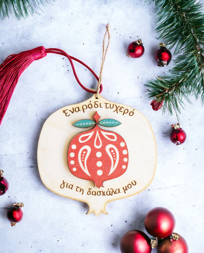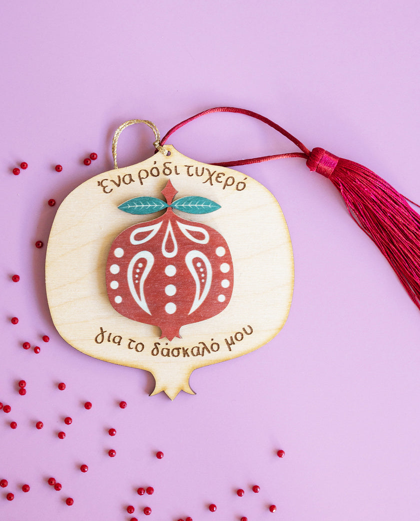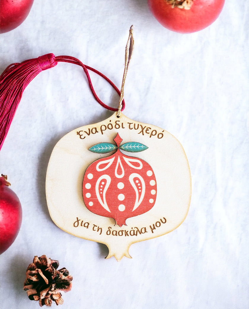 Ξύλινο Γούρι Ρόδι Τυχερό Για Τη Δασκάλα