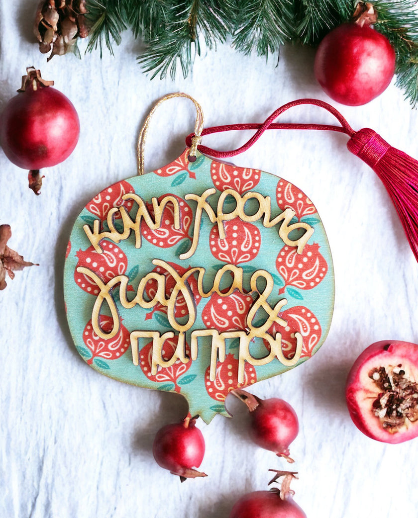 Ξύλινο Γούρι Ρόδι "Καλή Χρονιά Νονά και Νονέ"