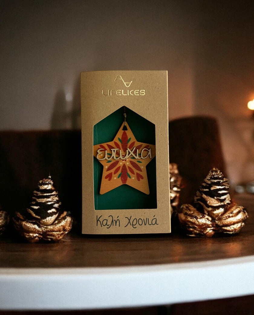 Ξύλινο Γούρι Αστέρι Μαμά & Μπαμπά Κρεμαστό