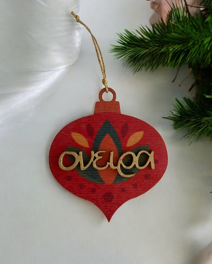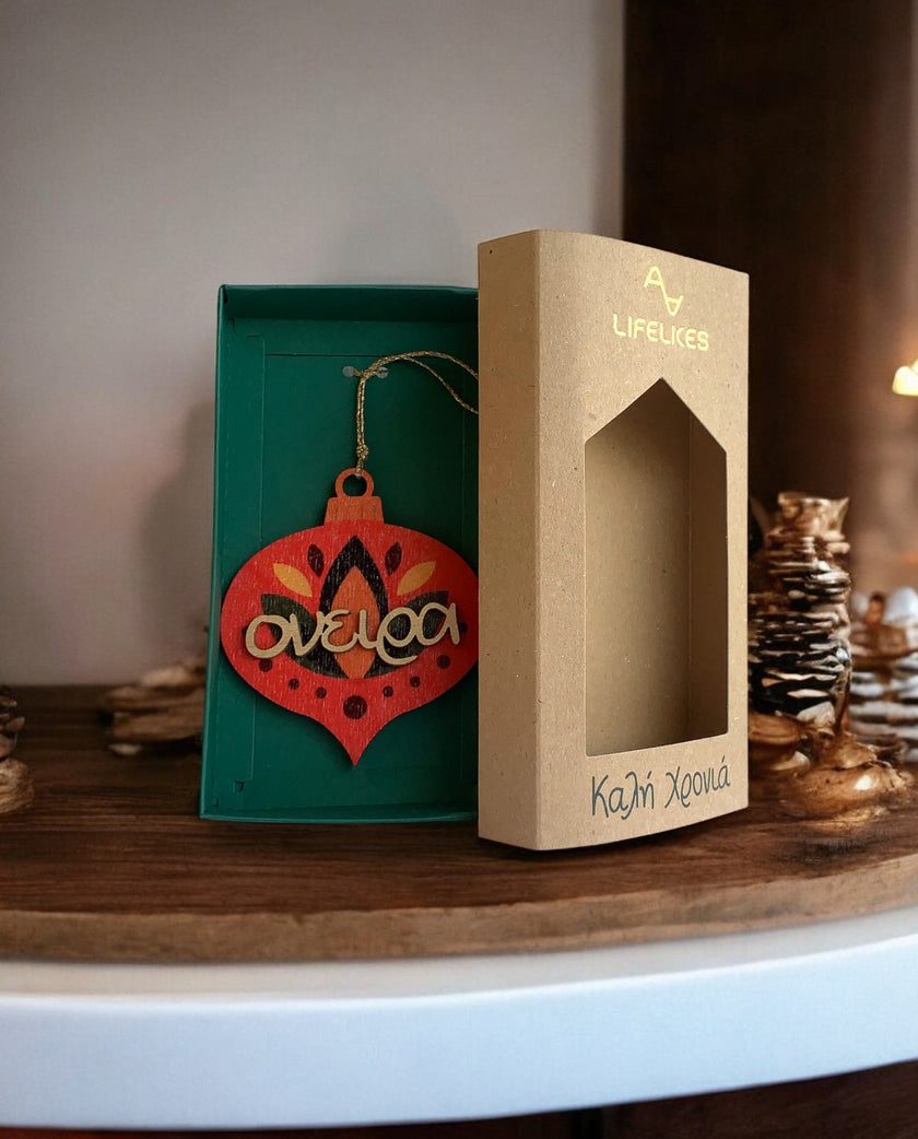 Ξύλινο Γούρι Μπάλα "Καλές γιορτές Γιαγιά" Κρεμαστό