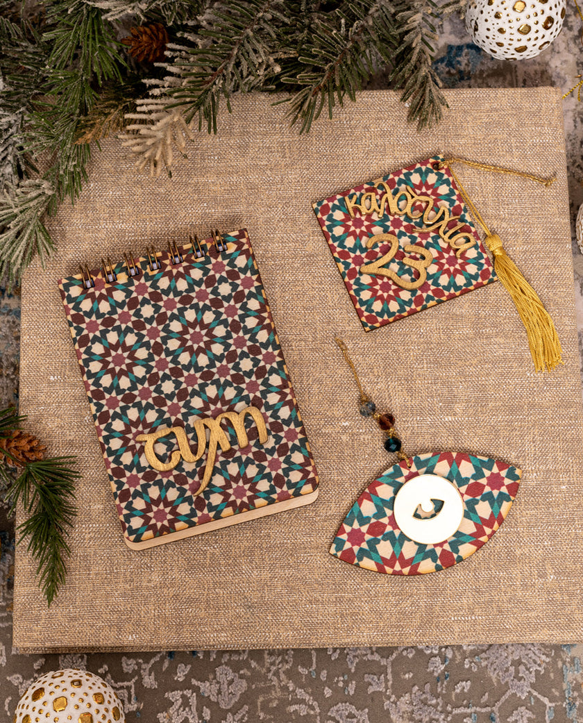 Ξύλινη Ατζέντα Με Ανάγλυφο Μαροκινό Πλακάκι