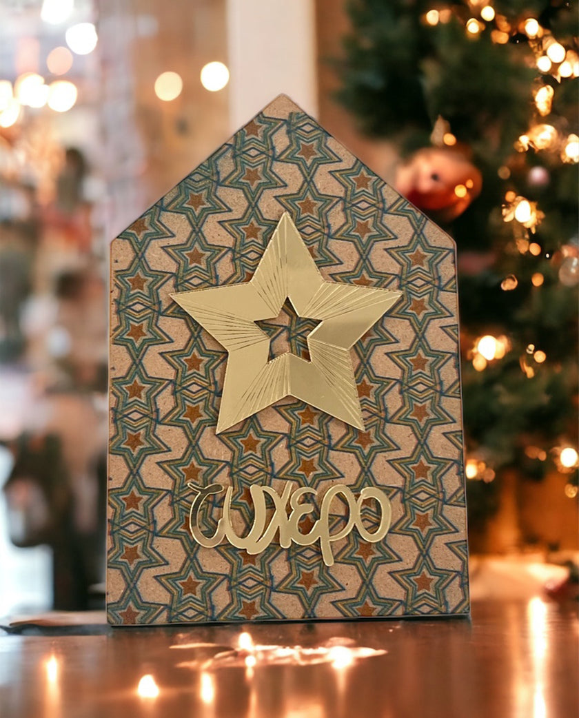 Wooden Star Charm with Wishes Dreams & Luck Tabletop